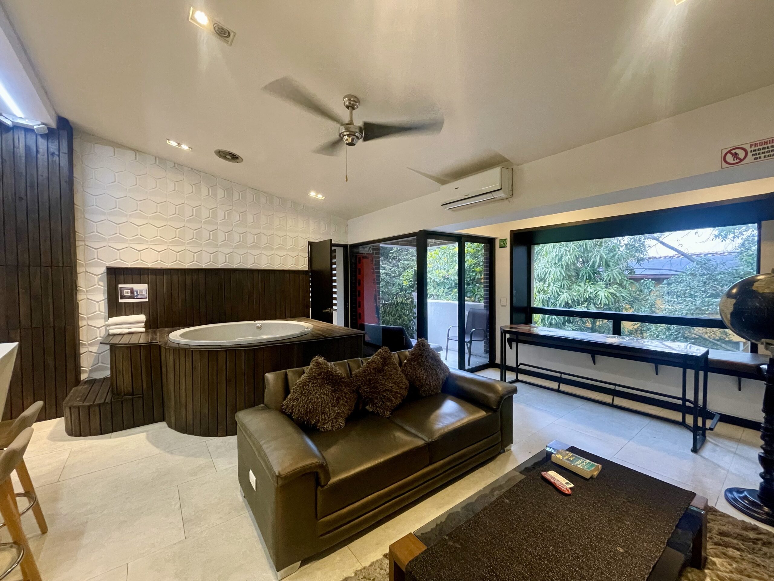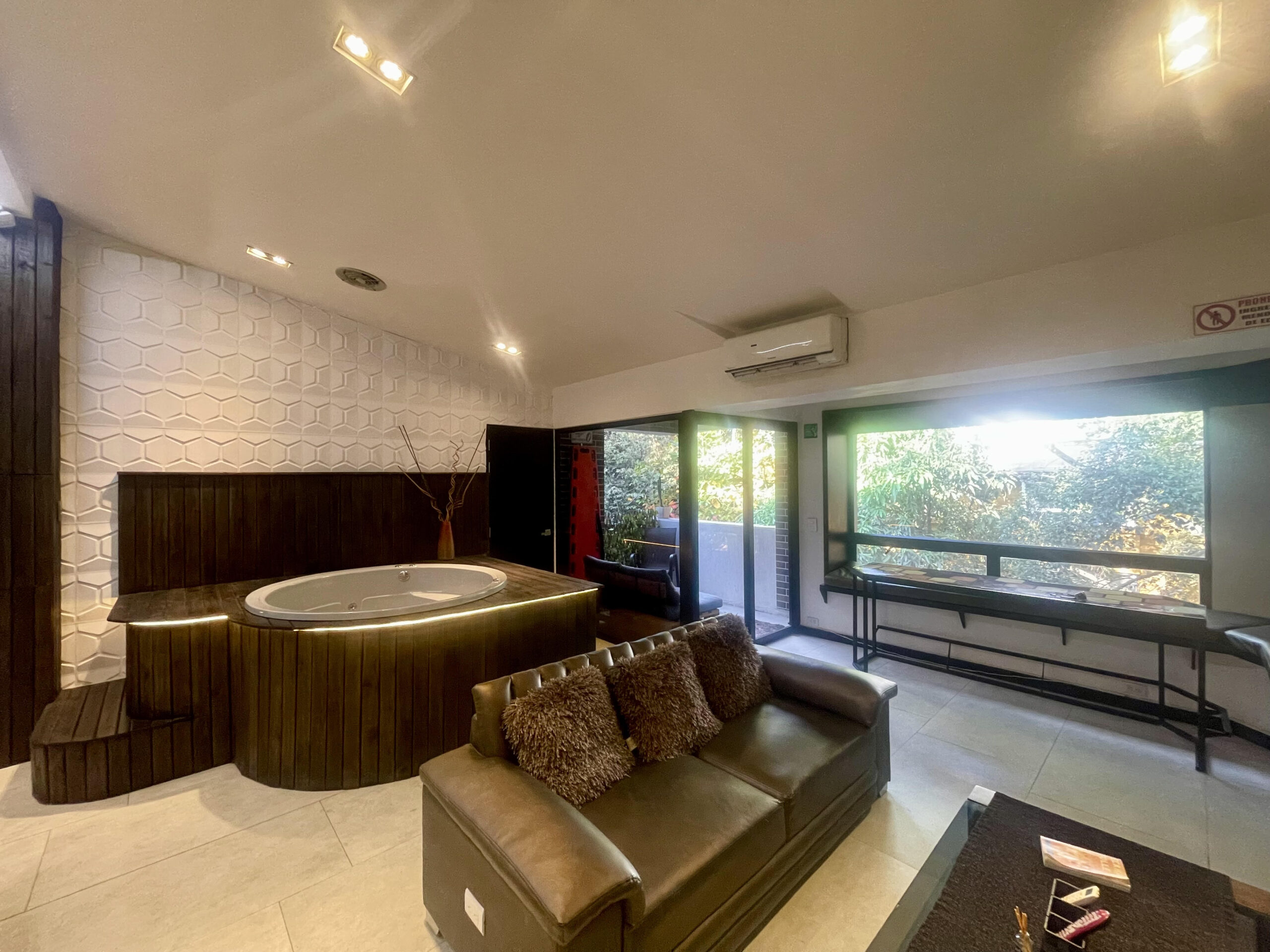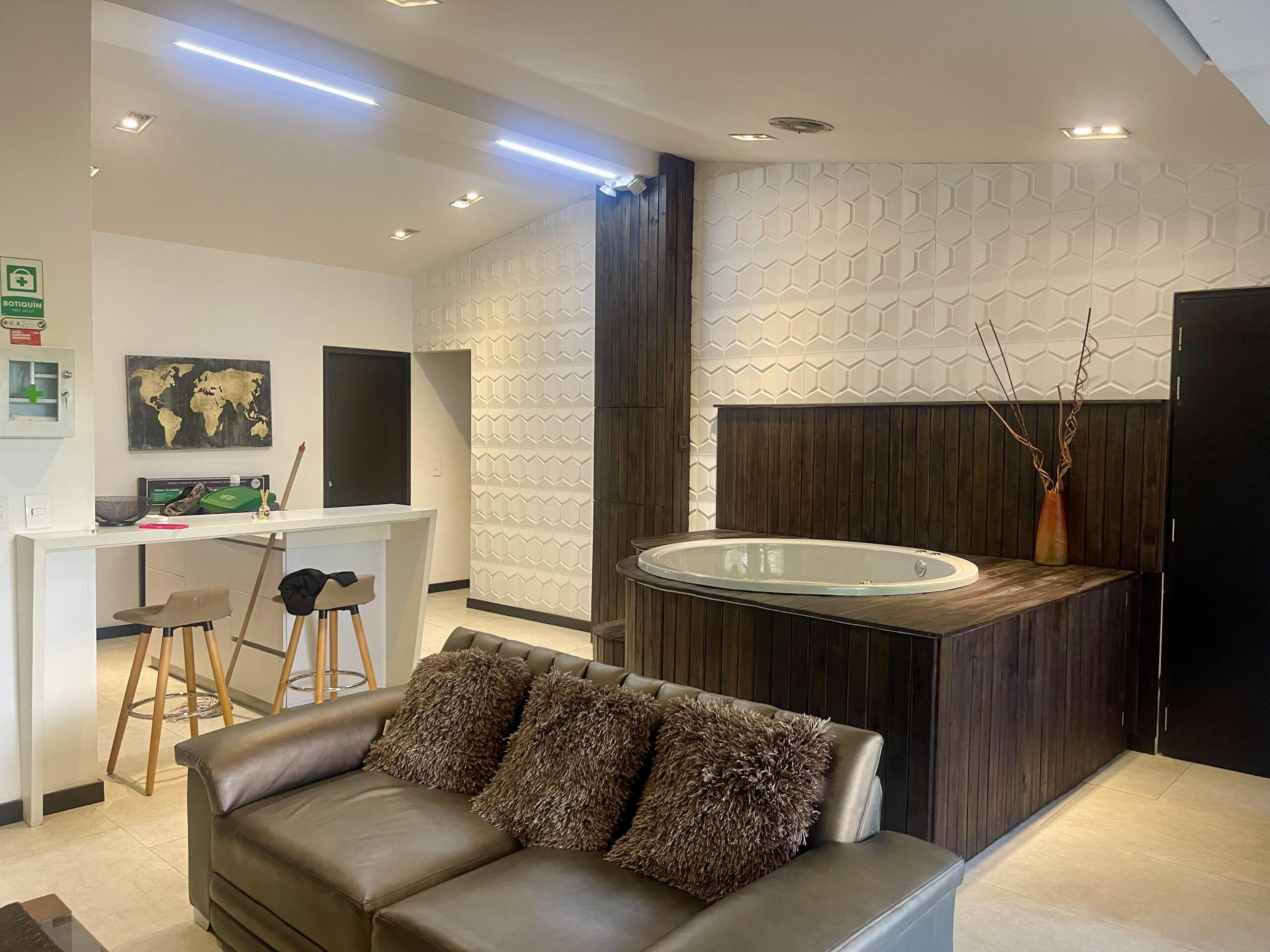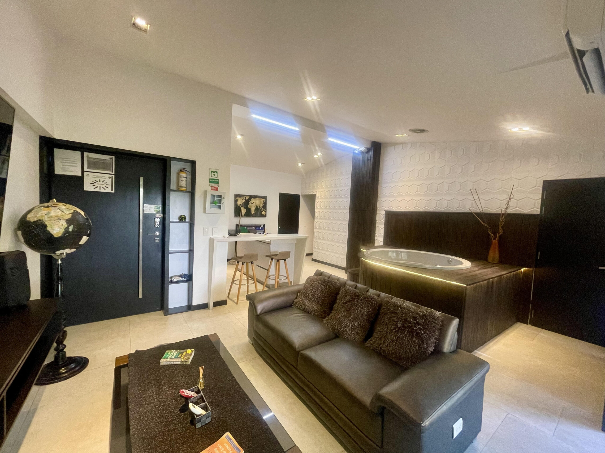 | Penthouse 402 is a 4-bedroom / 3 3-bathroom penthouse Apartment located steps from the infamous Parque Lleras (Lleras Park). The apartment is 1,200 square feet in size, featuring modern decor, a balcony, and an indoor jacuzzi. Groups of up to 7 persons are welcome to stay at the property, and we are guest-friendly for those seeking company during their stay. | |||||||||||||||||||||||||||||||||||||