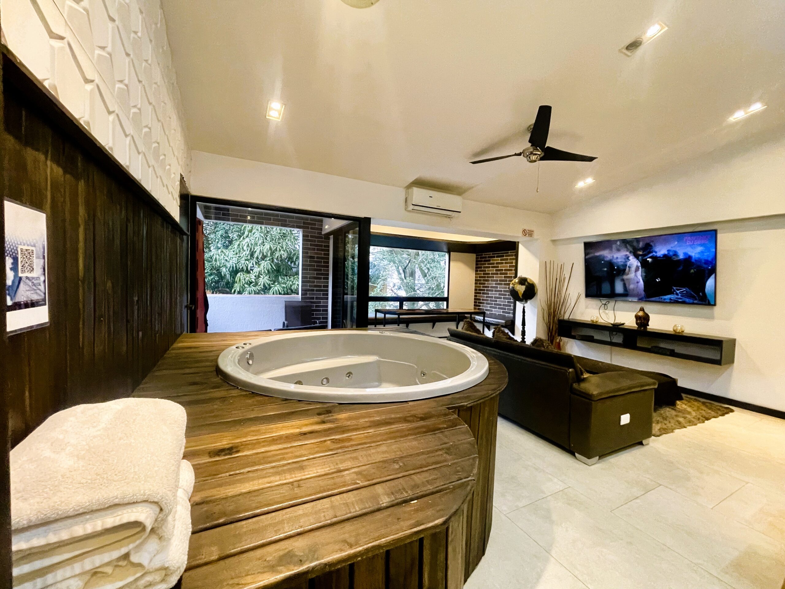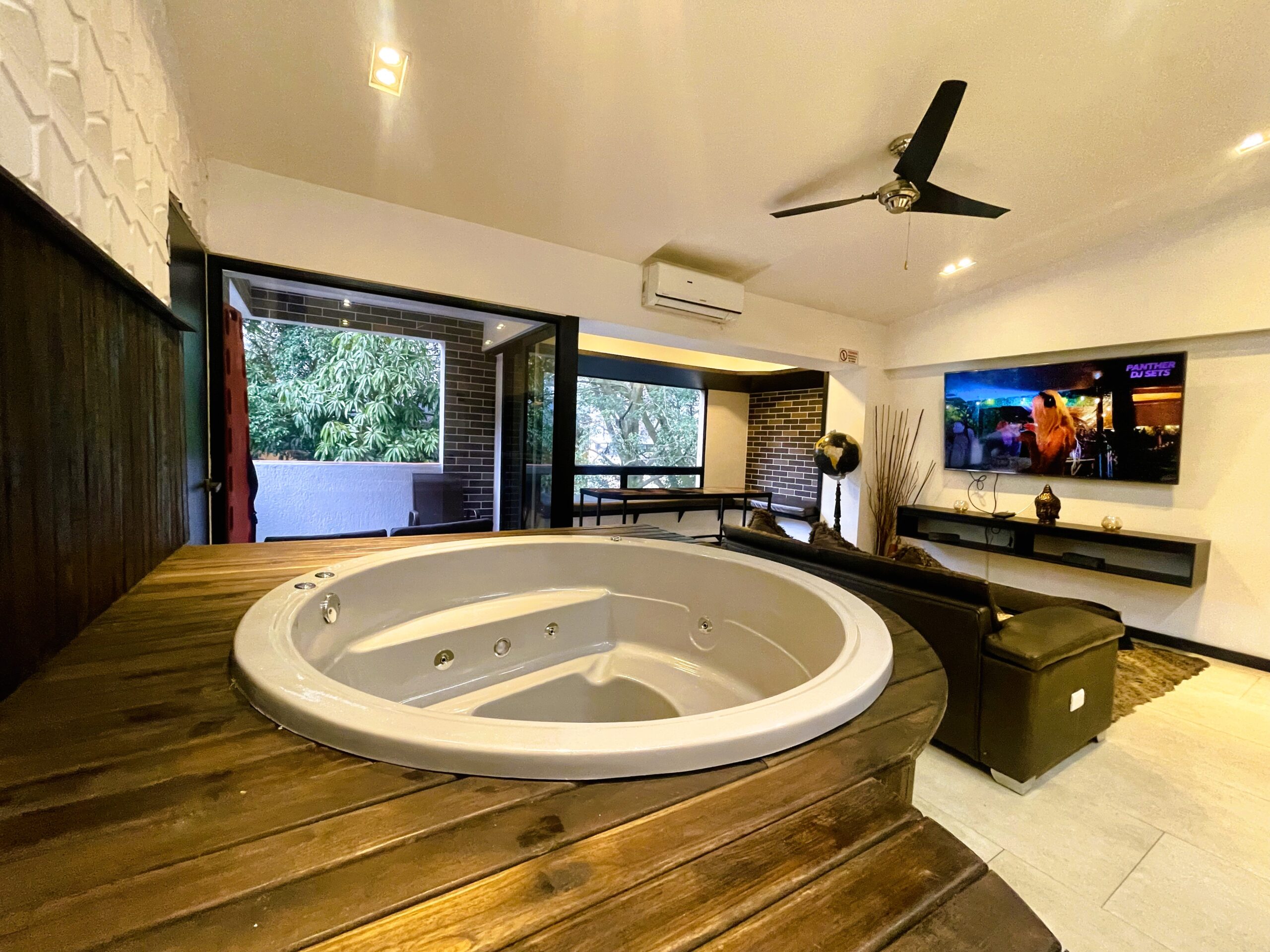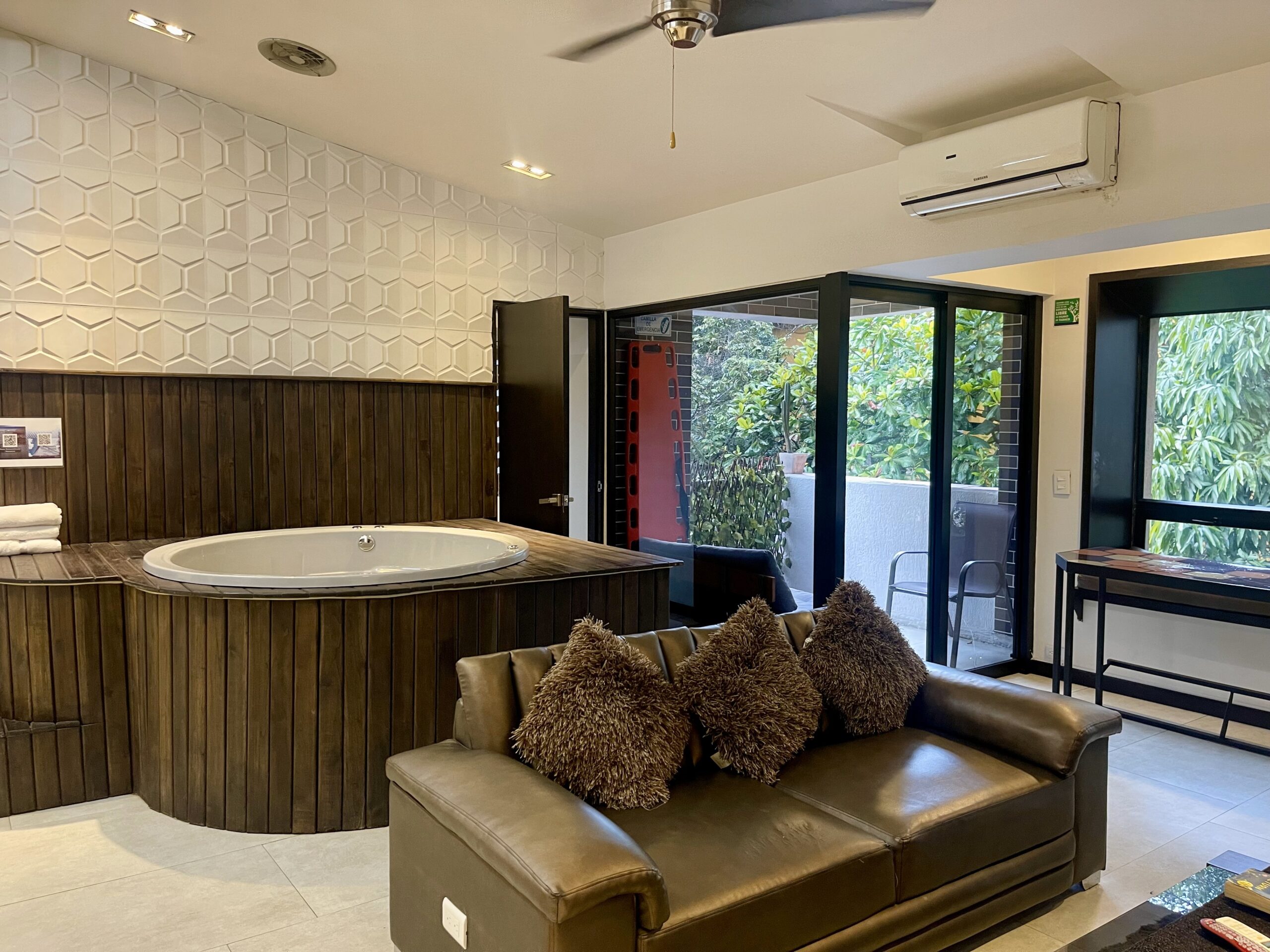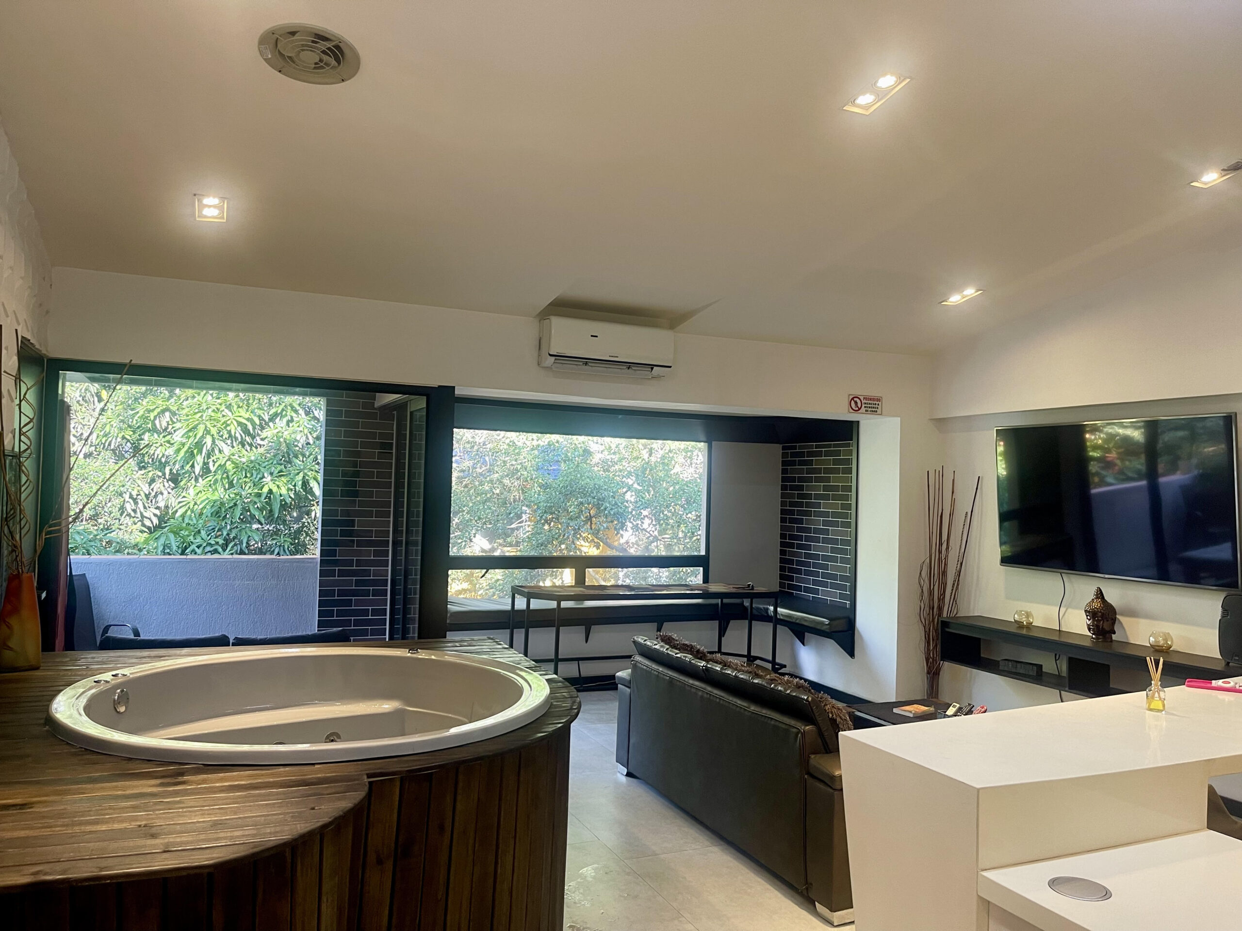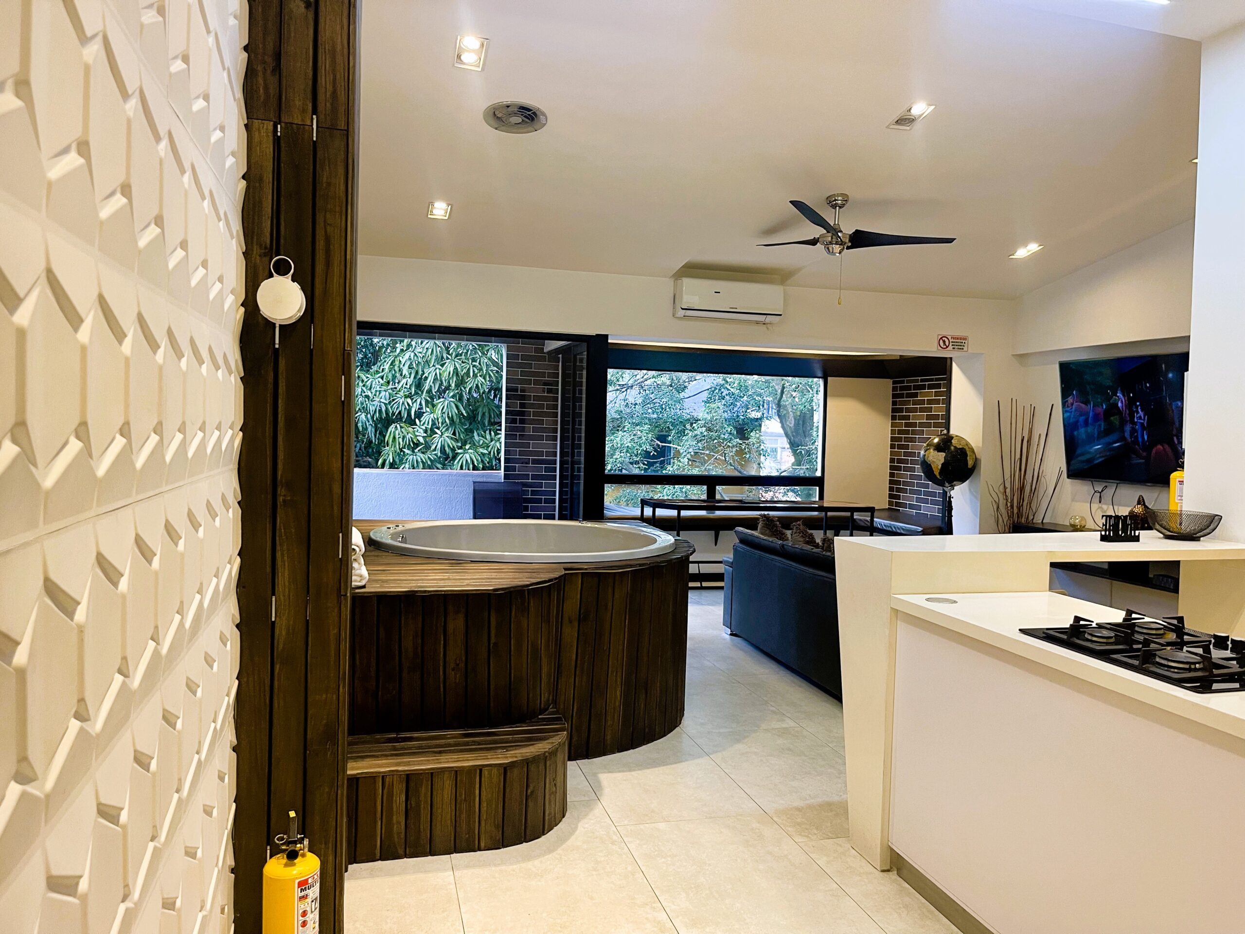 | Penthouse 402 is a 4-bedroom / 3 3-bathroom penthouse Apartment located steps from the infamous Parque Lleras (Lleras Park). The apartment is 1,200 square feet in size, featuring modern decor, a balcony, and an indoor jacuzzi. Groups of up to 7 persons are welcome to stay at the property, and we are guest-friendly for those seeking company during their stay. | |||||||||||||||||||||||||||||||||||||